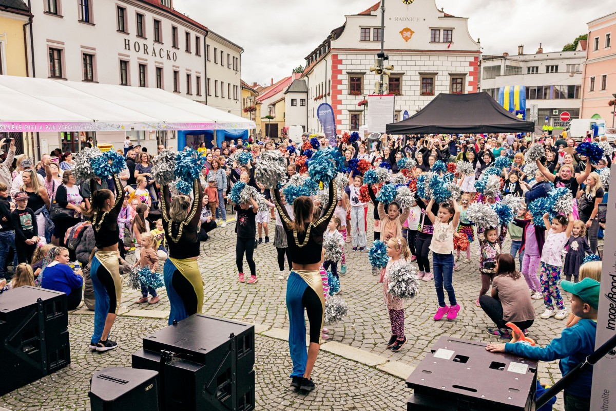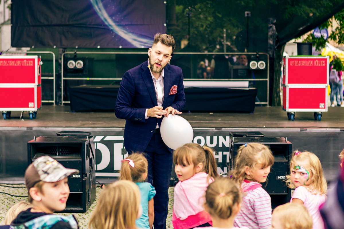 Na podiu i před ním se celé odpoledně něco dělo. Po oficiálním zahájení písní Waka Waka patřilo podium divadelnímu představení Jak šel pejsek do školy a nadšení bylo vidět na každé malé tvářičce. Program dále patřil velmi milému kouzelníkovi, který čaroval jak s malými, tak i velkými návštěvníky. Plno dětí si pak odneslo zvířátkový balonek z rukou mága.