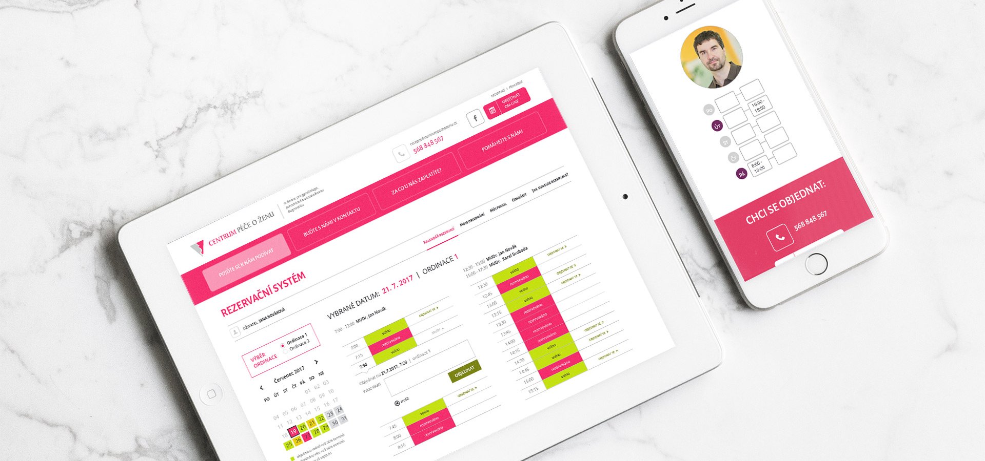 Nezbytnou součástí moderní gynekologie je i rezervační systém, díky němuž si lze z pohodlí domova vybrat datum a čas návštěvy dle vlastních preferencí. Systém zobrazuje jednotlivé ambulance a denní přehled obsazenosti a volných termínů. Pro komunikaci s lékařem je k dispozici interní chat. Systém zároveň s předstihem upozorňuje klientky na každoroční preventivní prohlídku.