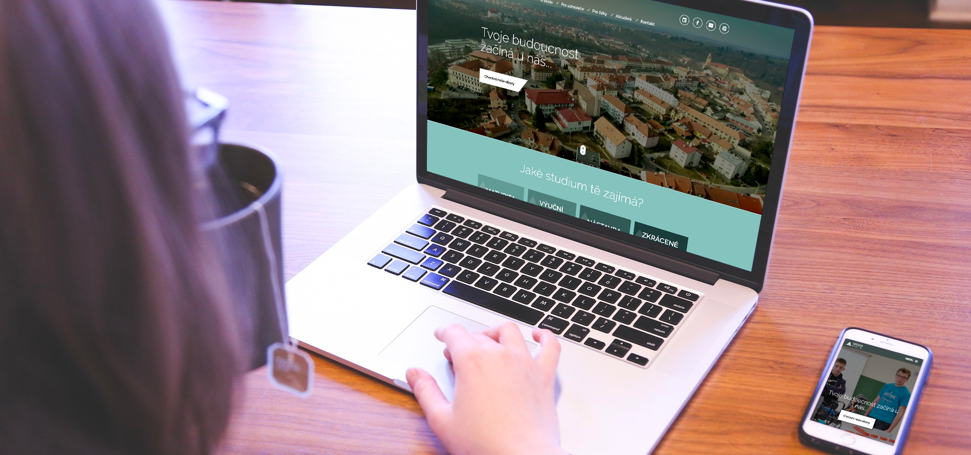 Zadání od klienta k novému webu pro nás bylo výzvou: být zapamatovatelní! A tak jsme se do toho pustili z gruntu a pro začátek jsme zrealizovali natáčení dronem a nafotili fotografie ze života a prostor školy. Získali jsme tak spoustu kvalitního materiálu, se kterým jsme mohli dále pracovat. Zaměřili jsme se přitom na to, jak mladé lidi nalákat na perspektivní obory, která tato škola nabízí.